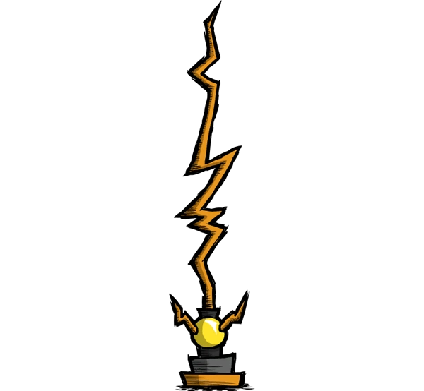Sobald der Blitzableiter platziert wurde, absorbiert er jeden Blitz, der in ein nahes, brennbares Objekt einschlagen würde. Seine Reichweite beträgt 40 Längeneinheiten (eine Heugabel markiert einen Bereich von 4x4 Längeneinheiten).