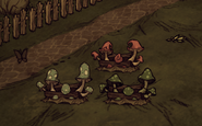 - Rote Pilze ziehen Kreaturen Gesundheit ab. Truthähne können mit drei roten Pilzen leicht getötet werden, ohne sie jagen zu müssen.