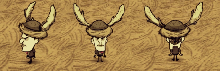 Tutaj można zobaczyć jak Maxwell wygląda w różnych elementach ubioru, które można założyć na slot głowy lub tułowia. Istnieje 27 ubrań w grze, 13 nakryć głowy oraz 14 elementów do założenia na slot tułowia.