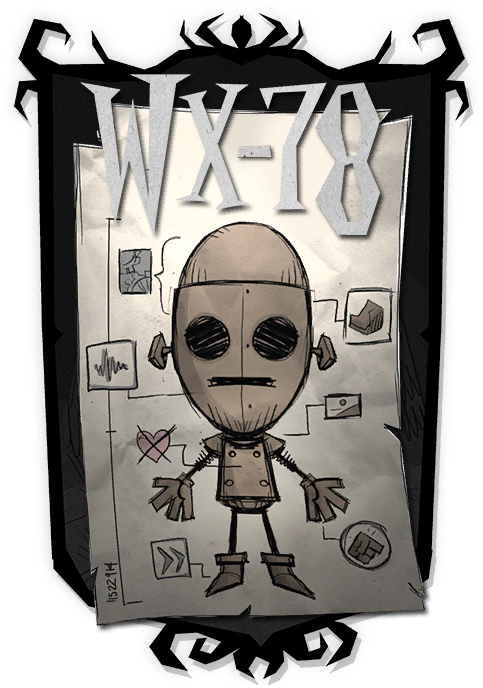 WX-78 é o quarto Personagem desbloqueável (960 XP, ver Experiência para mais informações sobre como desbloqueá-lo). WX-78 é um autômato auto-sustentável que odeia toda a matéria viva. Ele pode comer Comida vencida ou estragada sem penalidades de Saúde ou Fome. No entanto, as penalidades que ocorrem mesmo se o alimento não está estragado (como comer Carne de Monstro) ainda se mantém.