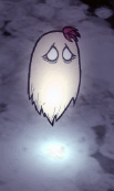 Hound waves, particularly early on, are easily handled by Abigail. Versus larger groups she can be overpowered, but the first several weeks can be spent in relative safety as you can largely ignore the handful of Hounds that came for you, picking up bits and pieces of them when the deed is done. Beware of fires from Red Hounds later on: the burn damage can harm Abigail if she spends too much time sitting inside of it. In Don't Starve Together, you are recommended to use shielding elixirs (, ) to Abigail, as when larger groups are going to attack you, your spiritual sister helper is going to have serious issues surviving the waves, making survival particularly hard for Wendy when it comes to Hounds in later seasons.