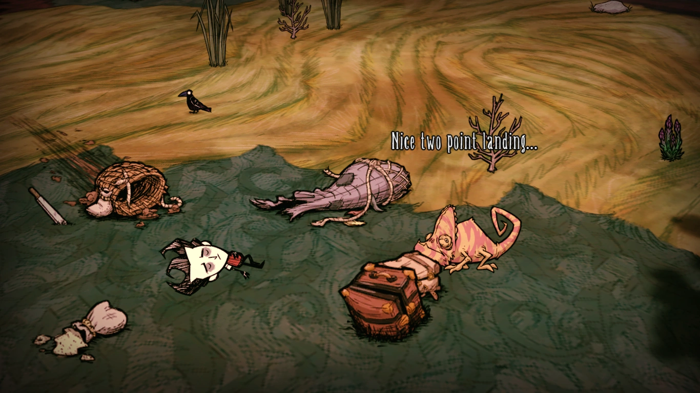 The Maxameleon greeting Wilson as he lands in the world of Don't Starve: Hamlet