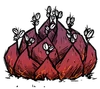 These are a corrupted version of normal Flowers and are most commonly found around Teleportato components and within the Maxwell Biome. It is used as a sanity barrier, as player's sanity will be drained swiftly when they are near Evil Flowers. They can be picked by hand which drains 5 Sanity and yields one Dark Petals, which can be eaten to drain another 5 Sanity. They can only be spread by Bees. | |
