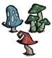 Each of the three mushrooms can be hand picked at different times of the day (Red Mushroom during the Day, Green Mushroom during the Dusk, and Blue Mushroom during the Night), which then re-grow after 10–20 hours of rain. They can also be dug up with a Shovel, at any time of day - this will yield two mushrooms, but mushroom spawn will be destroyed. Mushrooms don't regrow during winter. |
