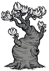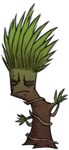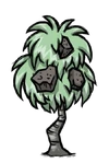 These trees are exclusively found in the Marsh Biome. These trees don't have a life-cycle. When cut down with an Axe it will drop a Twig and they have a 20% chance of dropping a log. The stump also yields a log like the others. The Spiky Tree and the Cave Banana Tree are the only trees that drop Twigs. |