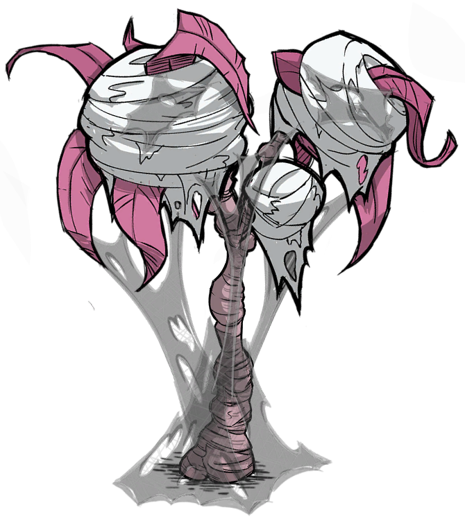 There is a also a rotten version of the Rainforest Tree, named Sick Rainforest Tree, which can only be found in the Gas Rainforest Biome. Even if they don't share the same appearance, they yield the same resources. Sick Rainforest Trees do not bloom during the Lush Season. However, it is renewable if a Jungle Burr is planted in the Gas Rainforest Biome and is allowed to grow, resulting in the rotten version of the tree instead of the normal one.