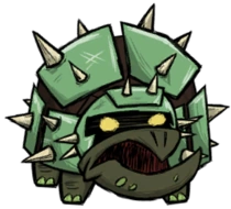 The Snortoise is a hostile mob found in The Forge event of Don't Starve Together. They are the third creature encountered in The Forge and are one of the strongest regular mobs. They are tortoises that have metal armor covered in spikes on their shells.