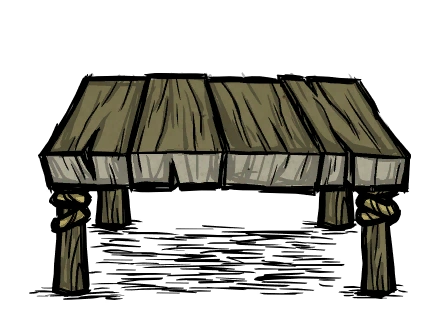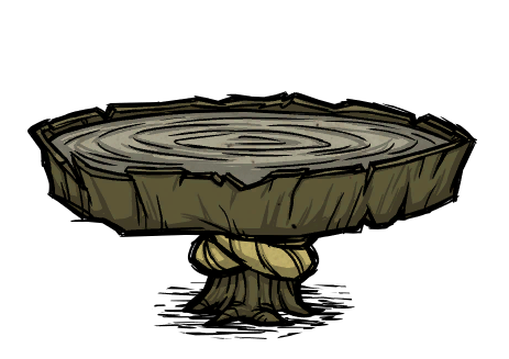 The Round Wooden Table and Square Wooden Table are craftable Structures exclusive to Don't Starve Together, introduced in the From Beyond updates. They can be crafted in the Decorations Filter or Carpentry Filter with 2 Boards and 1 Rope when standing close to a Sawhorse.
