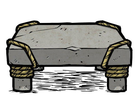 The Stone Round Table and Stone Square Table are craftable Structures exclusive to Don't Starve Together, introduced in the From Beyond updates. They can be crafted in the Decorations Filter with 3 Cut Stone and 2 Ropes when standing close to an upgraded Sawhorse.