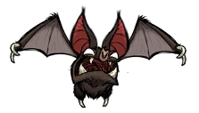 The Vampire Bat is a Mob exclusive to the Hamlet DLC. Vampire Bats are essentially the Hamlet version of Hounds: They will attack the player periodically and will come in waves where their numbers will increase the more days the player has lived. They have 130 health and can be kited in the same way as Hounds. When killed, they have a chance to drop Monster Meat, a Pig Skin? and a Batilisk Wing?.