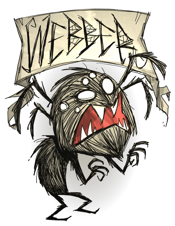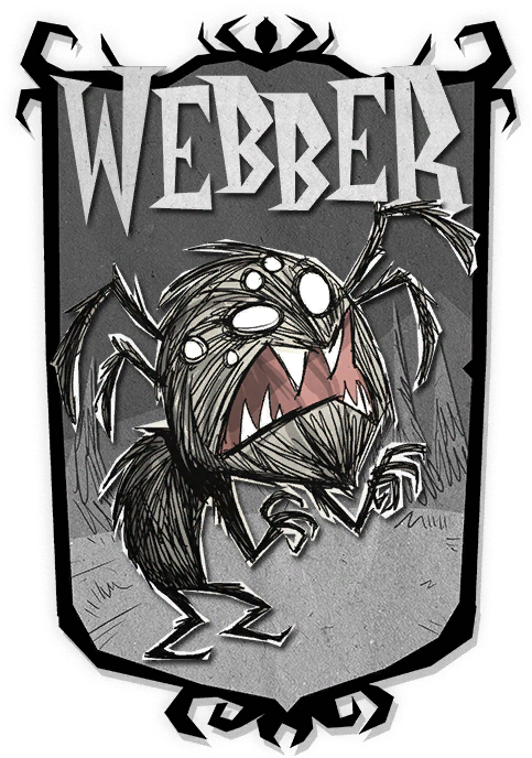 Webber is one of the two playable Characters exclusive to the Reign of Giants DLC. He's the only one of the two that is not unlocked via Experience. He's also one of the playable Characters in Don't Starve Together. Webber looks like a humanoid spider, though he's actually a child that was fused with a spider that tried to eat him. He received a character refresh exclusive to DST in June 2021.[1]