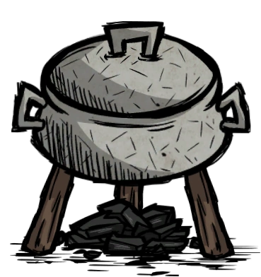 The Crock Pot is a Structure used to cook a variety of belly-filling dishes from basic Foods. Found on the Food Tab, it requires a Science Machine to prototype, and costs 3 Cut Stone, 6 Charcoal, and 6 Twigs to build.