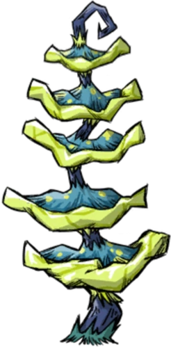 月亮蘑菇树 是 饥荒联机 中自然生成的专属物体。 它们在月亮洞窟中充当光源。每次用斧头砍树,都会生成一个月孢子。它们会掉落两颗木头和一颗月亮蘑菇,挖树桩可以获得一根木头。